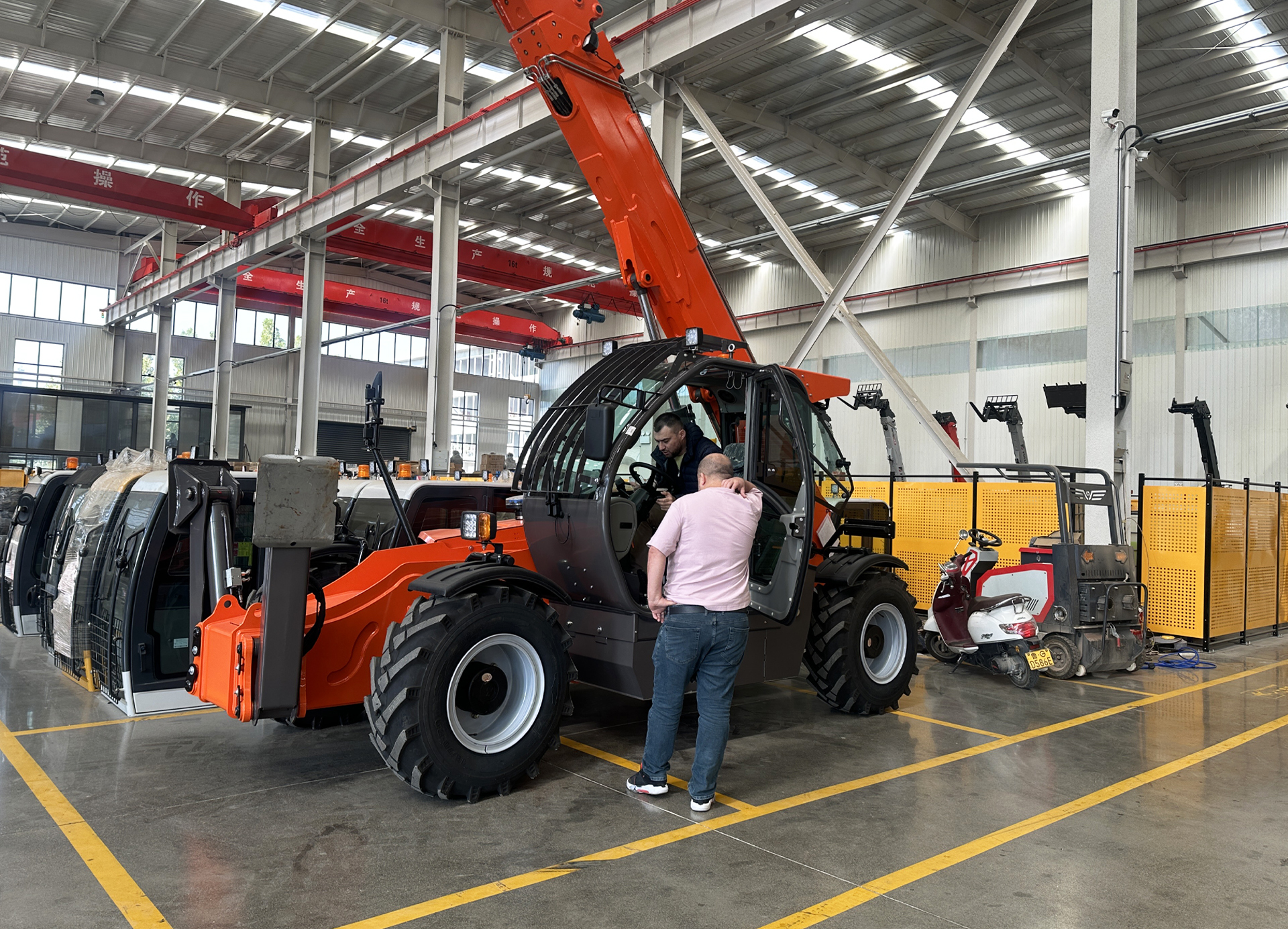 During the visit, they also got up close to our hot-selling 3 ton and 5 ton telescopic forklifts, testing the flexibility of the boom operations and the precision of lifting control, and praised the meticulous craftsmanship and durable design of every component!